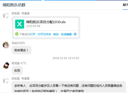 分析检测室冉老师将任务分配到个人