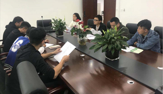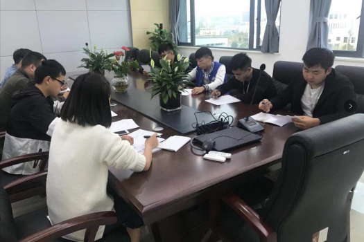质量负责人詹磊与技术室开会分析项目情况