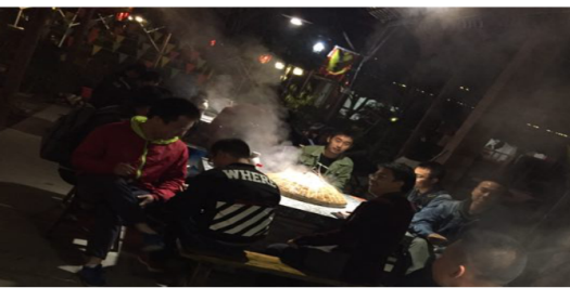 在晚上聚餐期间,现场部汤主任跟大家唠家常、讲经验让我们感觉到浓浓的家庭气息。为了感谢公司领导与汤主任的关怀,我们向领导敬上了满怀深情的佳酿,浓浓的佳酿漂浮在餐桌上方,载着无限的暖意,使整个聚餐其乐无穷。在一片欢声笑语中,在一阵阵热烈掌声中聚餐活动落下了帷幕。